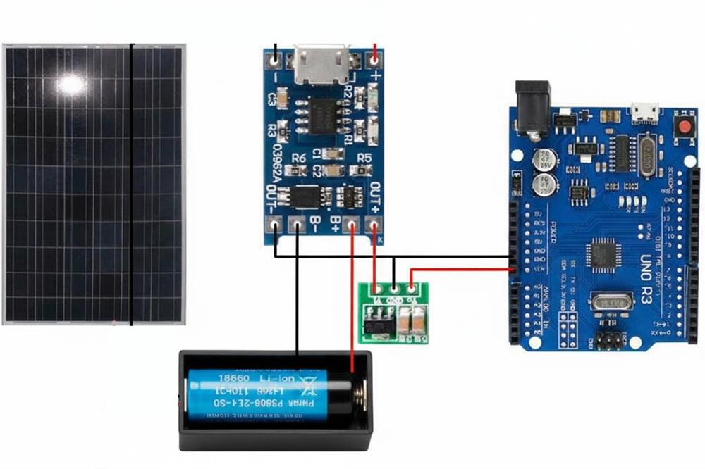 Con el panel solar al sol, tarda unas 4 horas en cargar completamente la batería. Un Arduino UNO corriendo el sketch BLINK funciona durante unas 17 horas.
