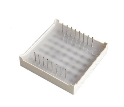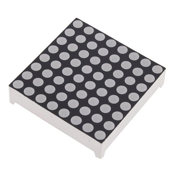 Esta es una matriz de leds de 5mm dispuestos en 8 filas de 8 columnas interconectados en ánodo común. Mide 38x38mm.