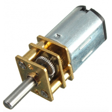 Pequeño motor de continua con reductor. La velocidad de rotación depende del voltaje de alimentación.