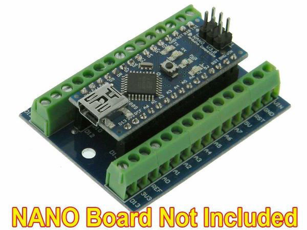 Esta tarjeta de expansión para el NANO tiene básicamente 2 ventajas: Expone todos los pines del NANO como terminales de tornillo con lo que resulta fácil cablear y recablear. Resulta muy sencillo reemplazar el Arduino si se produce alguna avería.